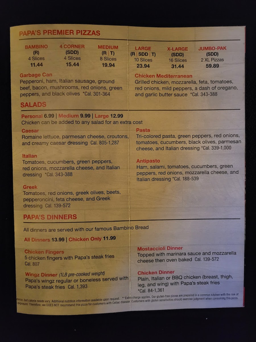 Introducing the Menu at Papa Romano's Pizza & Mr. Pita - Holland